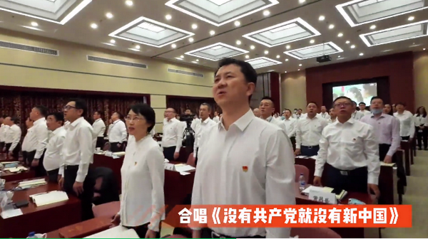 会人员集体重温入党誓词,现场每人获赠一本《共产党宣言》,大家一起体悟习近平总书记讲的“真理的味道非常甜”,并齐声高唱中国共产党百年华诞“生日歌”《没有共产党就没有新中国》