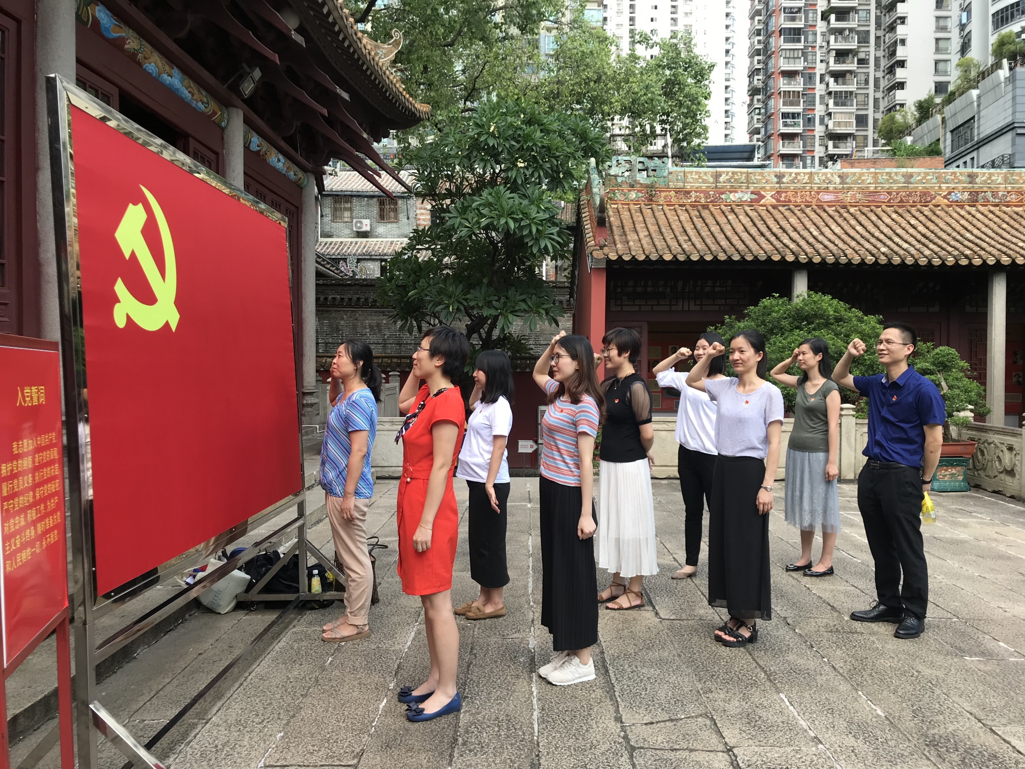 参观结束后,全体党员在农讲所宏伟的建筑前,面对着鲜红的党旗庄严地重温了入党誓词,每个同志接受了一次党性教育,更加牢记党员宗旨,明确党员义务。